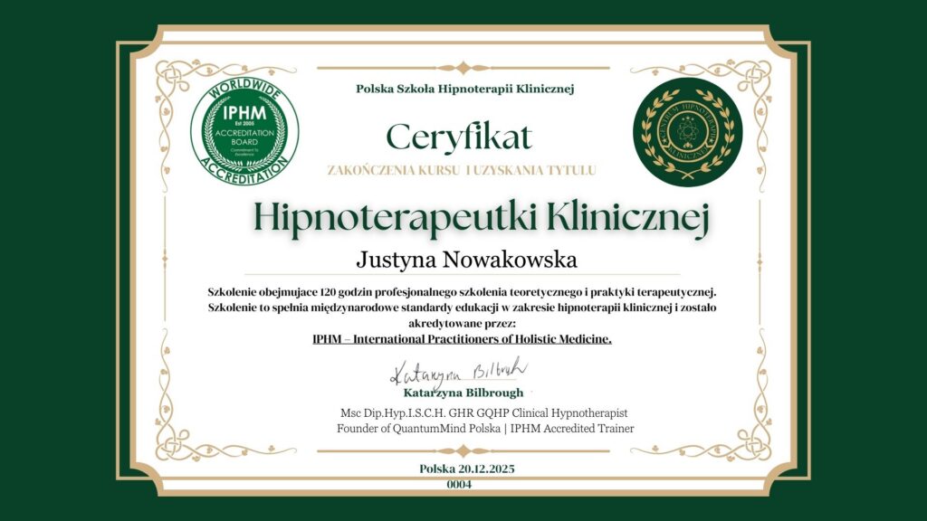 Zanim zaczęłam pracować jako hipnoterapeutka, patrzyłam na świat przez pryzmat logiki, analizy i planowania. Szukałam przyczyn, zależności i rozwiązań, które da się nazwać i uporządkować. Z czasem zrozumiałam jednak, że wiele z tego, co naprawdę wpływa na nasze życie, dzieje się poza świadomą kontrolą – w podświadomości, w pamięci ciała, w zapisanych emocjach i schematach.