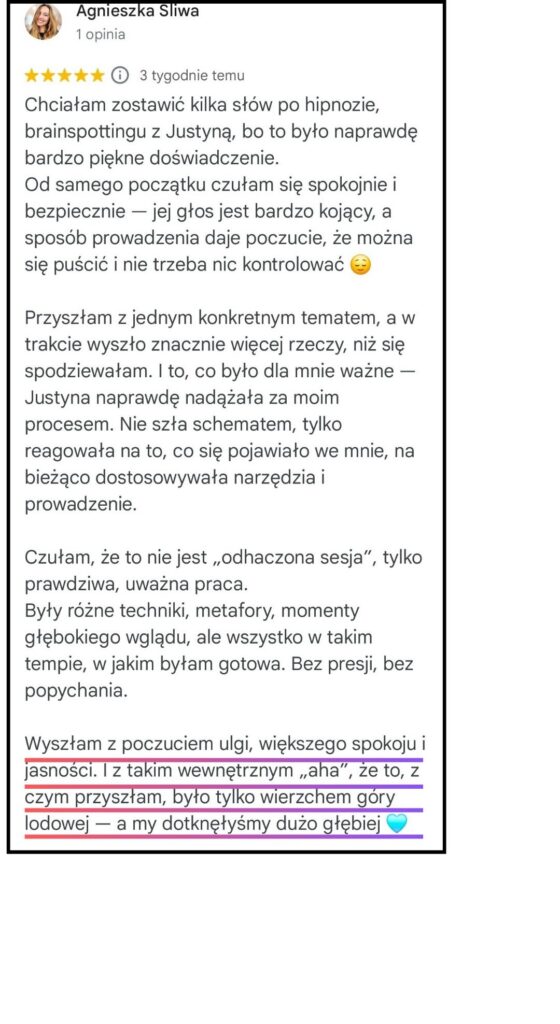 Hipnoza w mojej pracy nie jest sugestią ani „oddaniem kontroli”.