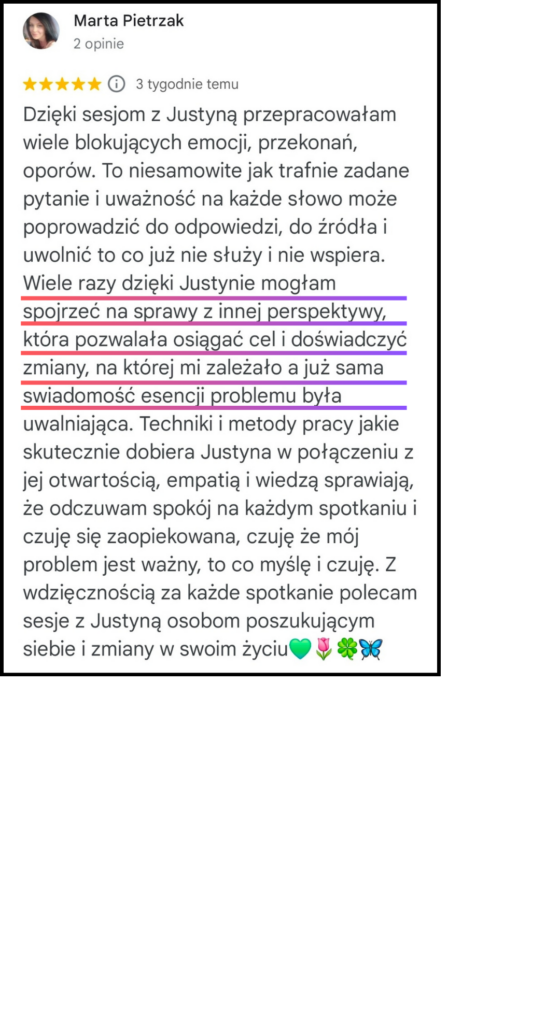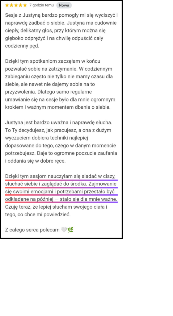 Każdy człowiek ma w sobie zasoby potrzebne do zmiany, regulacji i rozwoju. Czasem jednak dostęp do nich jest ograniczony przez doświadczenia, długotrwały stres lub wewnętrzne konflikty. Moją rolą nie jest naprawianie ani ocenianie — jest nią towarzyszenie w bezpiecznym dotarciu do tego, co już w Tobie istnieje.