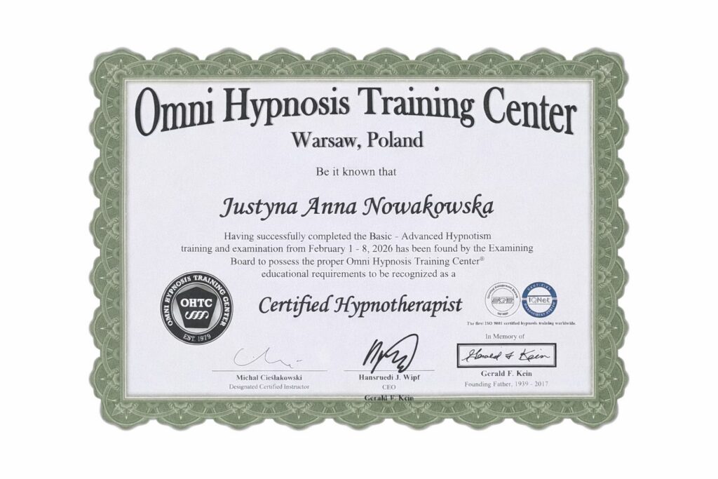 Uporządkowane, terapeutyczne wykorzystanie hipnozy do pracy z nawykami, emocjami i stresem – prowadzone krok po kroku w bezpieczny sposób.